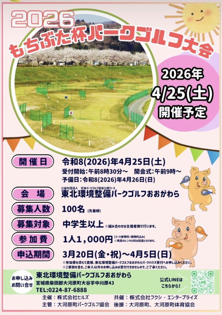 弊社が主催いたします「もちぶた杯パークゴルフ大会」を昨年に引き続き今年も開催させていただきます。多くの皆様のご参加をお待ちしております。